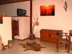 Thatched cottage with Queen-size bed, bath & shower and toilet en-suite, bar fridge, private entrance and patio, tea and coffee making facilities. There is also a TV and DVD.